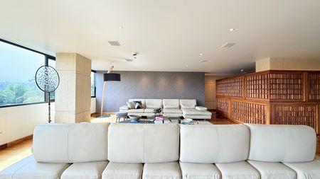 Tiene una vista panorámica hacia el Auditorio Nacional y la vibrante ciudad. La distribución: tres recámaras espaciosas, cada una con su propio baño completo, un medio baño de visitas y una sala de televisión.