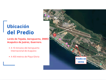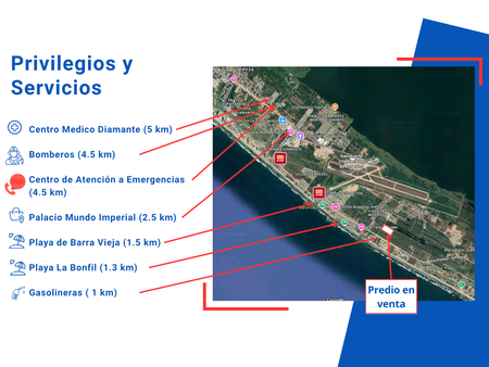 Excelente inversión para desarrollar vivienda tipo residencial, a 450 metros de la Playa Gloria, Playa de Barra Vieja a 1.5 km y Playa La Bonfil a 1.3 km.